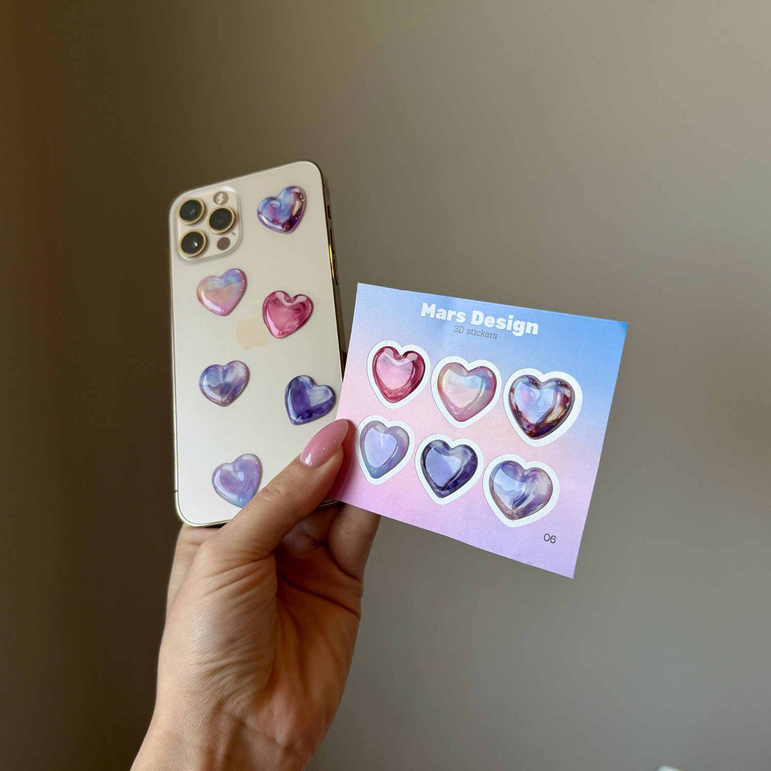 3D Glass Hearts sticker pack - მოცულობითი სტიკერების ნაკრები 6ც