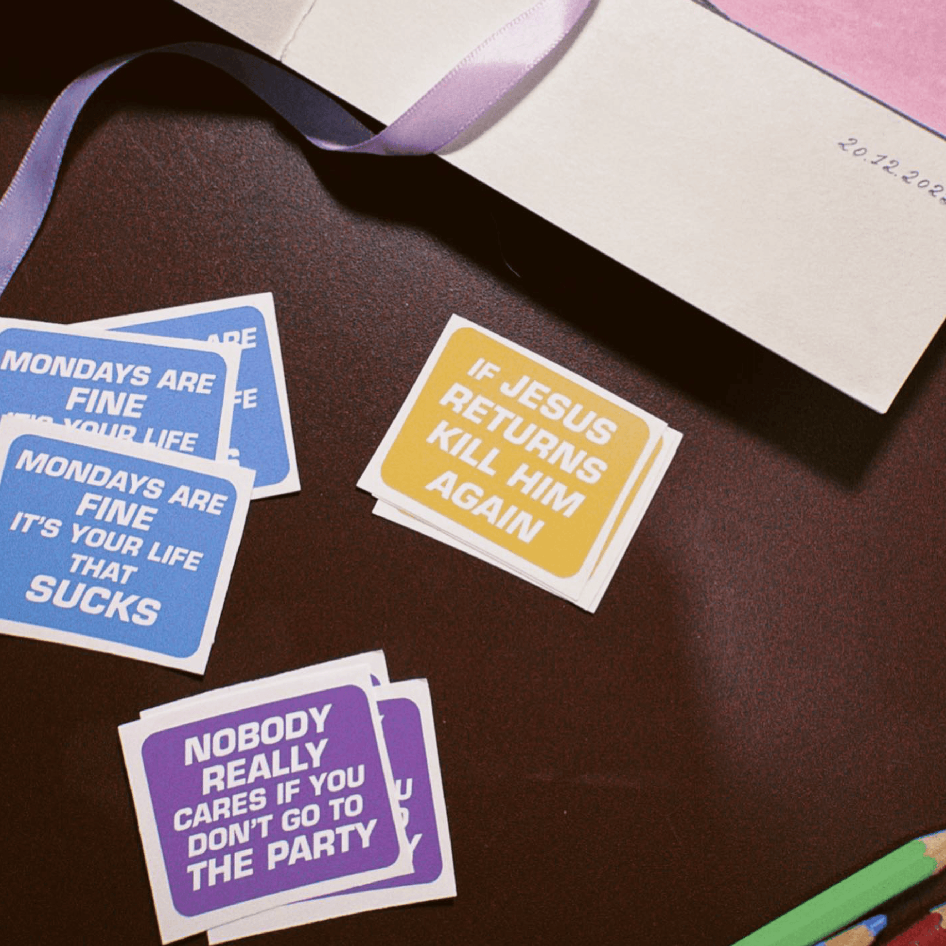 Mars Design-ის 6 სხვადასსხვა ფრაზის სტიკერი.