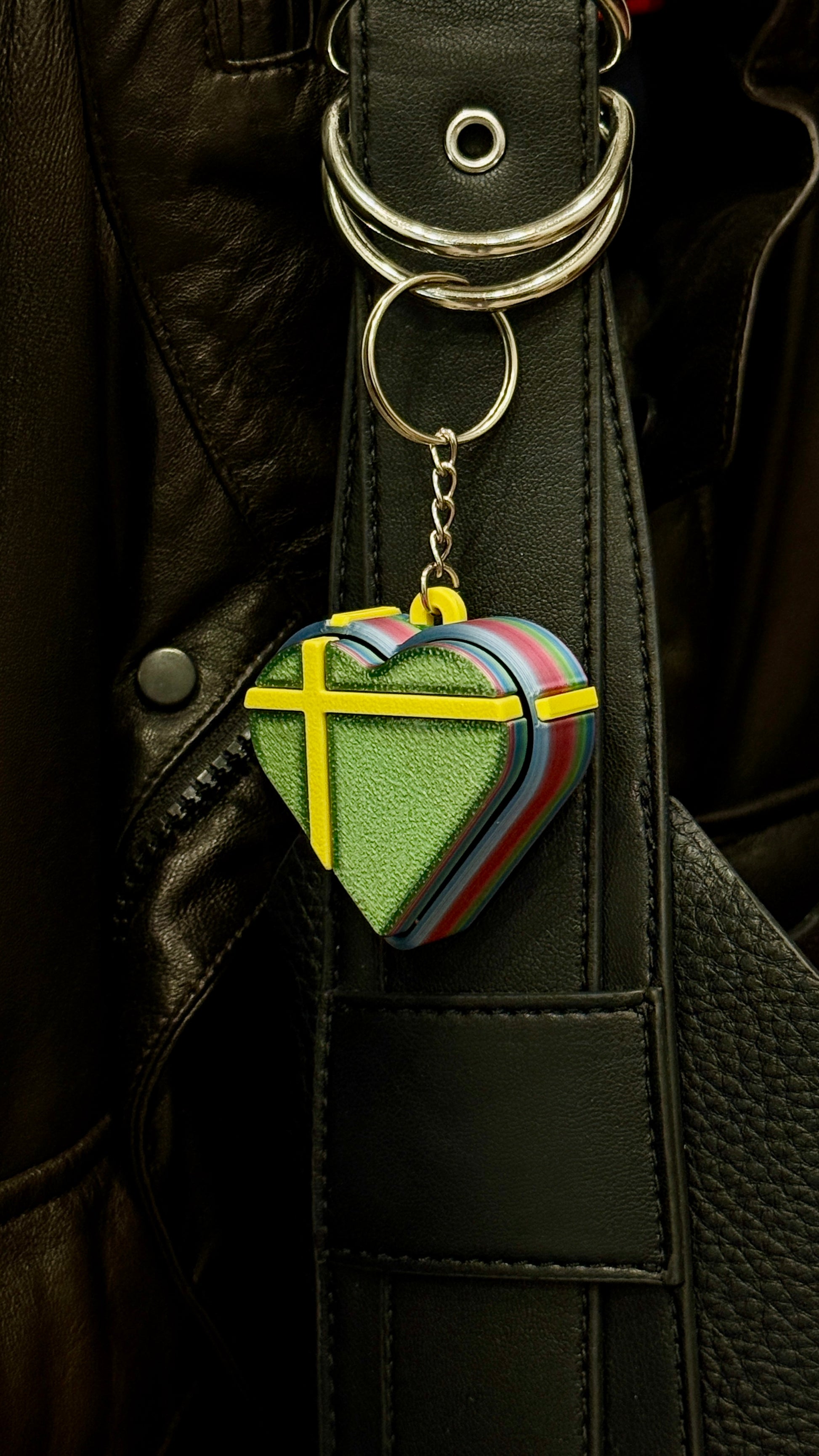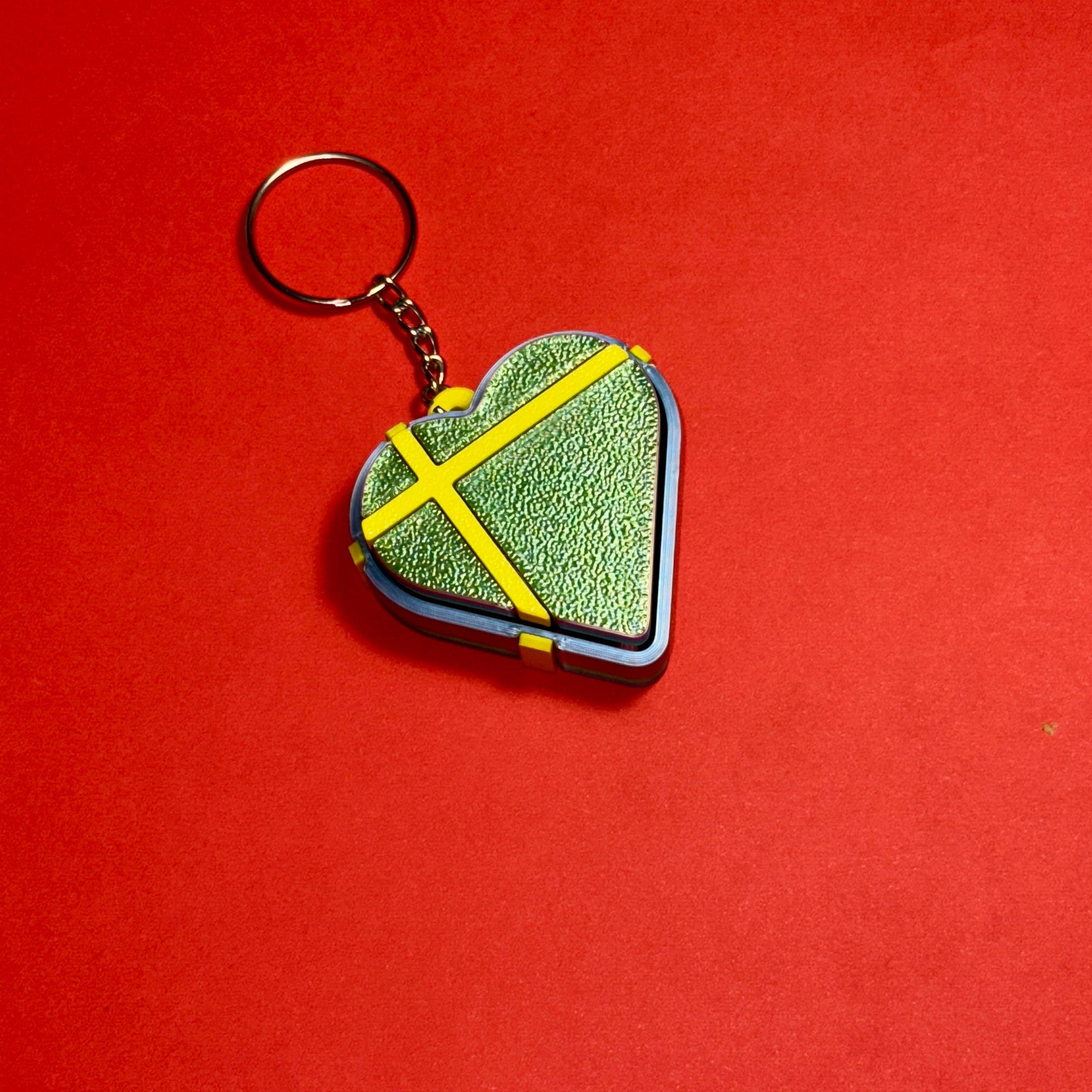 3D დაბეჭდილი გული ქლიქერი ბრელოკი / 3D Printed Heart Shaped Fidget Toy Keychain - Green & Yellow