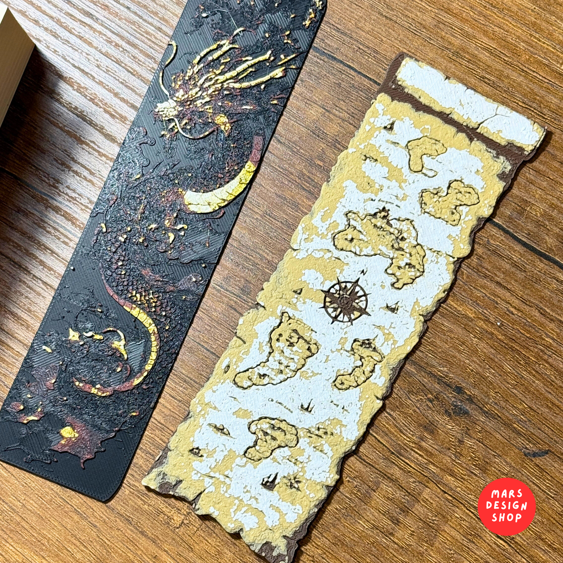 3D დაბეჭდილი სანიშნები 2ც. დრაკონი და რუკა / 3D Printed Bookmarks 2pcs. Dragon and Fantasy Map
